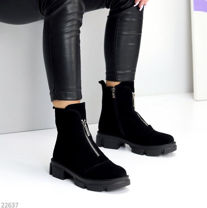 ⬆️НОВИНКИ Код 22637❣️ Розміри 36-40 Черевики "Bold" Матеріал - НАТУР. ЗАМША Всередині - Напівшерсть 70/30 Сезон - Зима Колір - Чорний Висота від п'ятки - 13,5см Підошва - 4см/2,5см Робоча блискавка збоку Виробник - Україна На середню стопу Розмір у розмір 36-23 37-24 38-24,5 39-25 40-25,5
