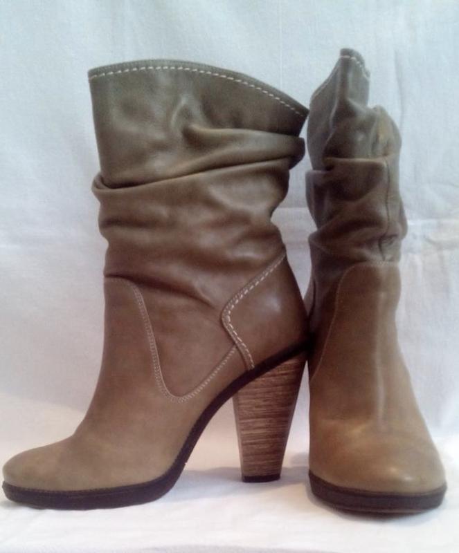 Нові утеплені чобітки шкіряні козаки на стійких підборах; Матеріал: водостійка шкіра і натуральна овчина. Антиковзка підошва. Підошва - 1 см ; підбор - 9 см; По устілці 25 див. Але так як носок звужений, йдуть на 36-37 розмір. Дивіться інші мої пропозиції. 🛍 приємних покупок