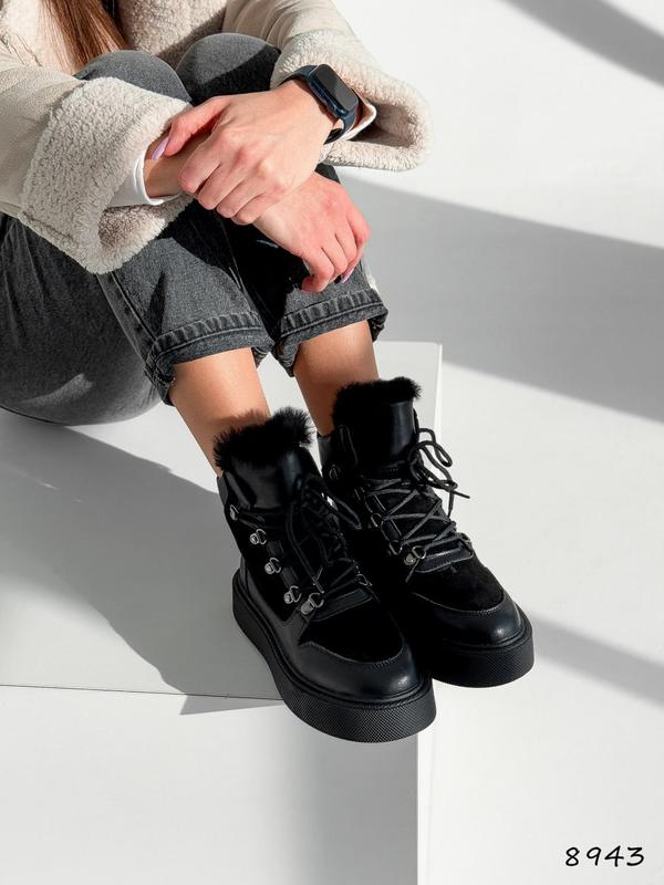 Код: 8943 Матеріал: натуральна замша(Китай) + натуральна шкіра(Китай) Колір: чорний підошва: 4 см спереду: 3,5 см. Висота від п'ятки: 13,5 см Всередині набивне натуральне хутро розмір: 37-40 37-24 см 38-24,5 см 39-25 см 40-25,5 см
