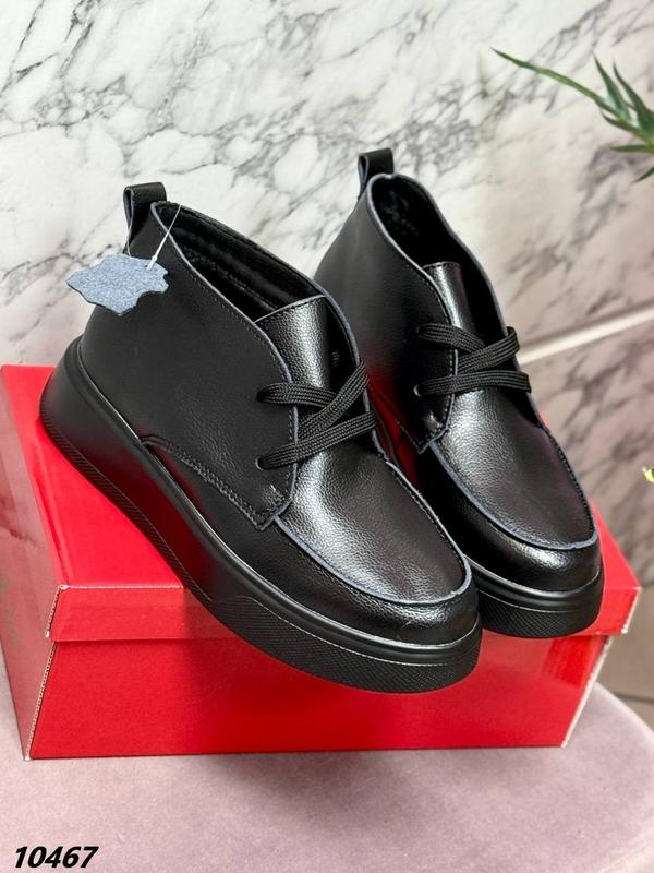 Код 10467 Черевики Сезон демі , всередині фліс Матеріал натуральна шкіра Колір чорний Висота від п'яти 8 см Висота підошви 4 см На шнурівці 🛒Розмірна сітка: 36 - 23,5 см 37 - 24,0 см 38 - 24.5 см 39 - 25,0 см 40 - 25,5 см 41 - 26,0 см