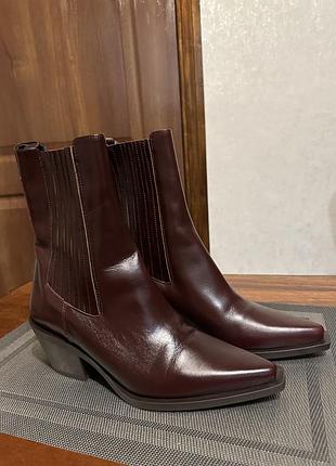 Ковбойки Zara в трендовому кольорі бургунді. Одягала 1-2 рази, дуже зручні. Натуральна шкіра.