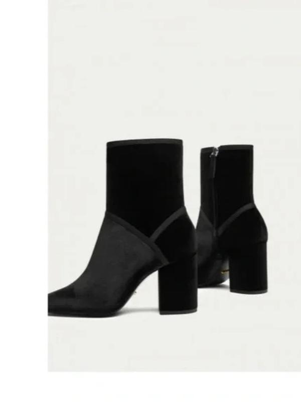 Стильные ботинки черного цвета. Верх велюр. в середине кожа. .Каблук устойчивый удобный размер 38 подойдут и на 37 размер.