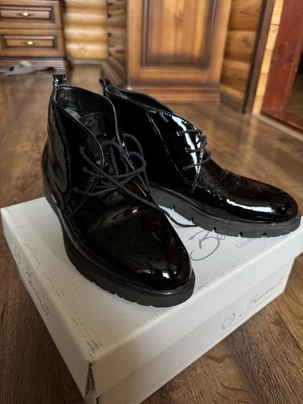 Виготовлені з лакованої шкіри і з глянцевим покриттям. На шнурівці. Розмір 38 але маломірять підходять на 37 розмір.