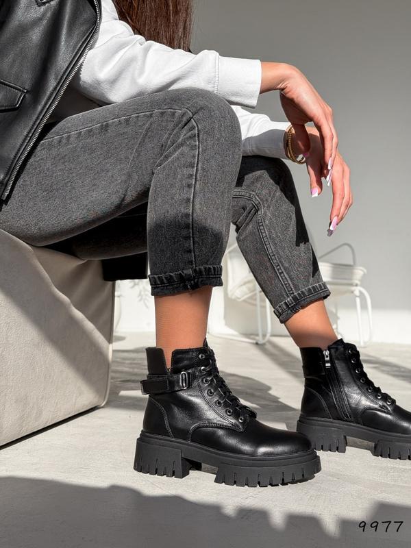Код: 9977 Матеріал: натуральна шкіра Колір: чорний Підошва: 5,5 см, спереду: 3,5 см. Висота від п'ятки: 13 см Всередині набивна вовна (40-60% натуральна вовна). Виробництво Україна розмір: 36-40 36-23,5 см 37-24 см 38-24,5 см 39-25,5 см 40-26 см 1700 грн
