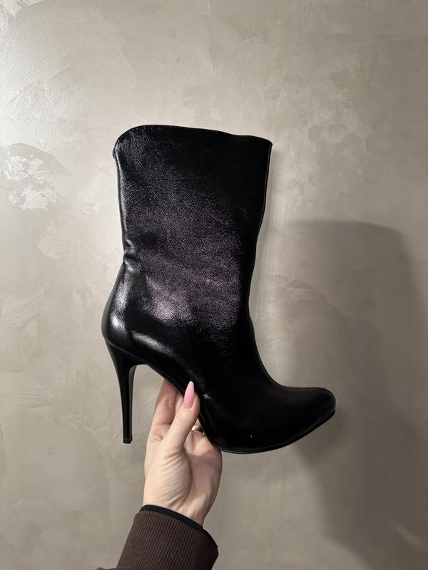 Чорні типу шкіра лакована дуже гарно сидять на нозі з застібкою