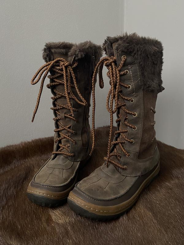 Утеплення 200 gm флісом, водонепроникні прикрашені штучним затишним хутром Натуральна шкіра,захищені шви Легка шнурівка та зручна блискавка Розмір 37,5(фактично на 23,5-24 см) Стан чудовий,легкі сліди вжитку