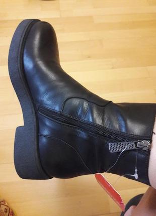 Зимові шкіряні черевики на стриженої овчині, на платформі 2,5 см і підборах 4,5 см. Висота черевика 15 см, обхват халяви 27 см, довжина устілки 26 см. Нові, без дефектів.