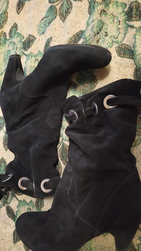 ботинки демисезонные замшевые натуральные итальянские сстояние идеальное дефекты фото 5-6 шилуштся высота ботинок 28 высота каблука 6 см голень 34 супенаторы целые