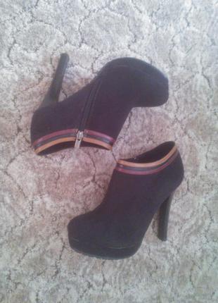 Стильні, зручні ботильончики. Будете в них блестать і підкорювати) Матеріал під замш (не натуральний). Висота каблука: 12 див. Спереду платформочка: 3 см (за рахунок неї висота каблука стає більш зручною).