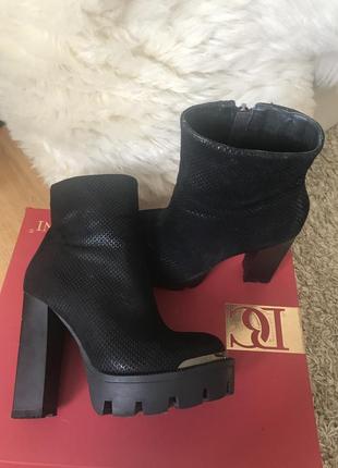 Дуже класні ботильйони на підборах,повністю натуральні,всередині на баечке.Зручні,дефектів немає,пару раз взуті.