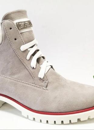 Жіночі Черевики стилі тімберленди світлосірого кольору .Экозамша -матерял верху,а всередині щільний хутро типу овчина! Хіт сезону!!! Каучукова антиковзка підошва білого кольору.Відмінна якість. Стильні,зручні,витривалі. Всі фото зроблені особисто і не проходили обробки! Розмір 36-41 повномірні