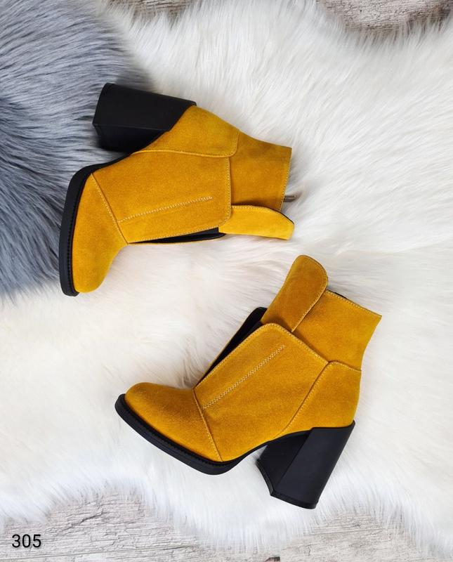 Новинка в наявності😍 Код 305 Ботильйони матеріал: НАТУР.ЗАМШ всередині байка збоку робоча блискавка попереду гумка висота від п'яти каблук 11см 9,5 см підошва спереду 1см розмір в розмір вир.Україна