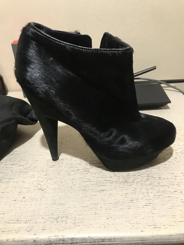 Ботильйони на високому , замшевому підборах, на платформі. Верх - стрижений поні. Всередині - натуральна шкіра. Оригінал - Yves Saint Laurent. Стан ідеальний. Одягали пару раз в ресторани.