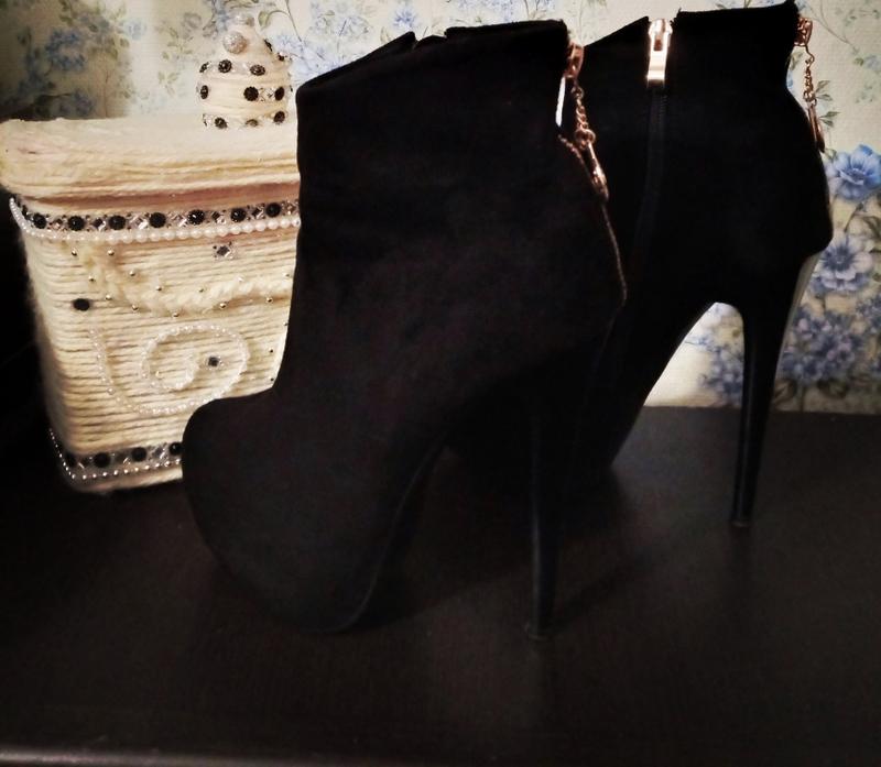 Ботинки в идеальном состоянии ещё набойки "разовые".Каблук 14см. очень удобные,устойчивые.Искуственный замш.Розмер указан 37,но реально подходит на стельку 24,5 38р.