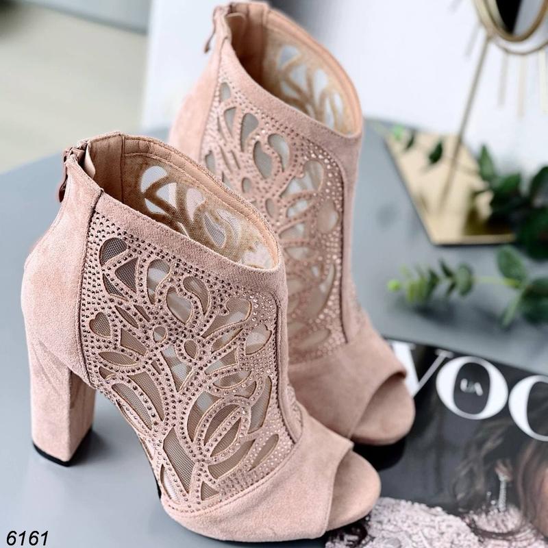 🔥 Ботильйони 🔥 🔺 Арт. 6161-669 ▪️ Категорія: #Ботильйони ▪️ Матеріал: замша еко + сітка колір пудра ззаду на блискавці висота взуття від п'яти 10,5 см висота каблука 11 см ▪️ Колір: пудра ззаду на блискавці висота взуття від п'яти 10,5 см висота каблука 11 см ▪️ Розмір: Наявність розмірів і вимірів по устілці - є :) ▪️ У наявності!