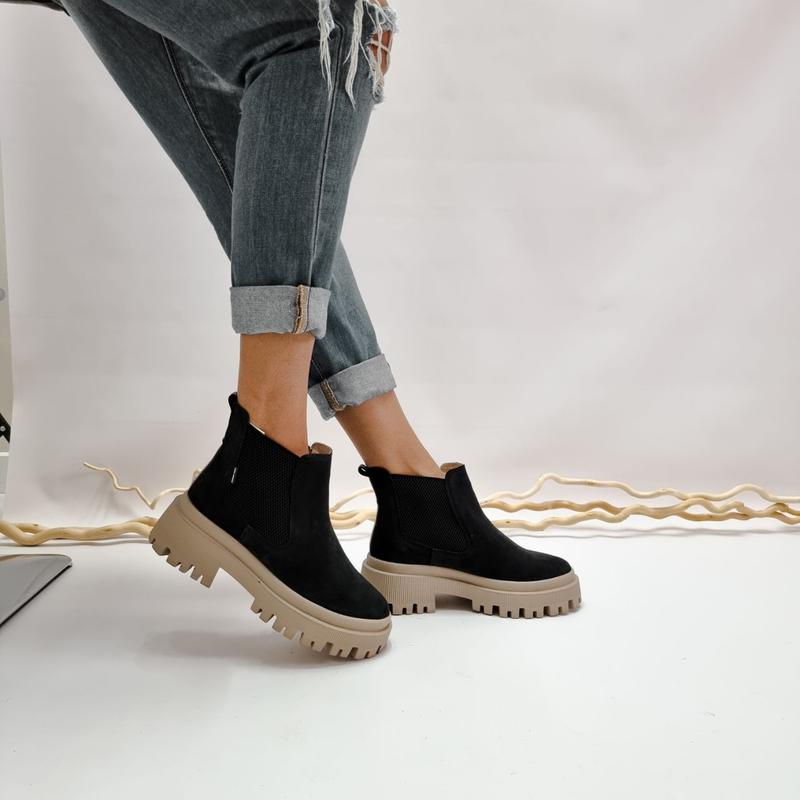 Верх изделия: натуральная итальянская кожа/замша; ✔️Сезон: демисезонные или зима; ✔️Подкладка деми/зима: байка / шерсть +100 ✔️Размерны ряд: 32 - 41 в размер; ✔️Подошва: ТЄП (термо-пластичная резина); ✔️Цвета в коже: черный, табак; ✔️Цвета в замша: черный; ✔️Замеры 32-35🧒🏻: 📍Высота изделия 10 см. 📍Подошва спереди 2,5 см.,сзади 4 см. ✔️Замеры 36-41🙍♀️: 📍Высота изделия 11 см. 📍Подошва спереди 4 см.,сзади 6 см."