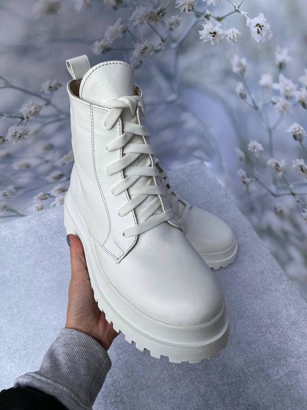 НОВИНКА♥️ 🥾Жіночі черевики 🖇Матеріал - натуральна шкіра 🖇Всередині 60% вовна + 40% акрил 🖇Колір - білий 🖇 Виробник - Італія 🇮🇹 Розміри : 37-40 37 - 23,5 см 38 - 24 см 39 - 24,5 см 40 - 25 см Ціна: 1450 грн