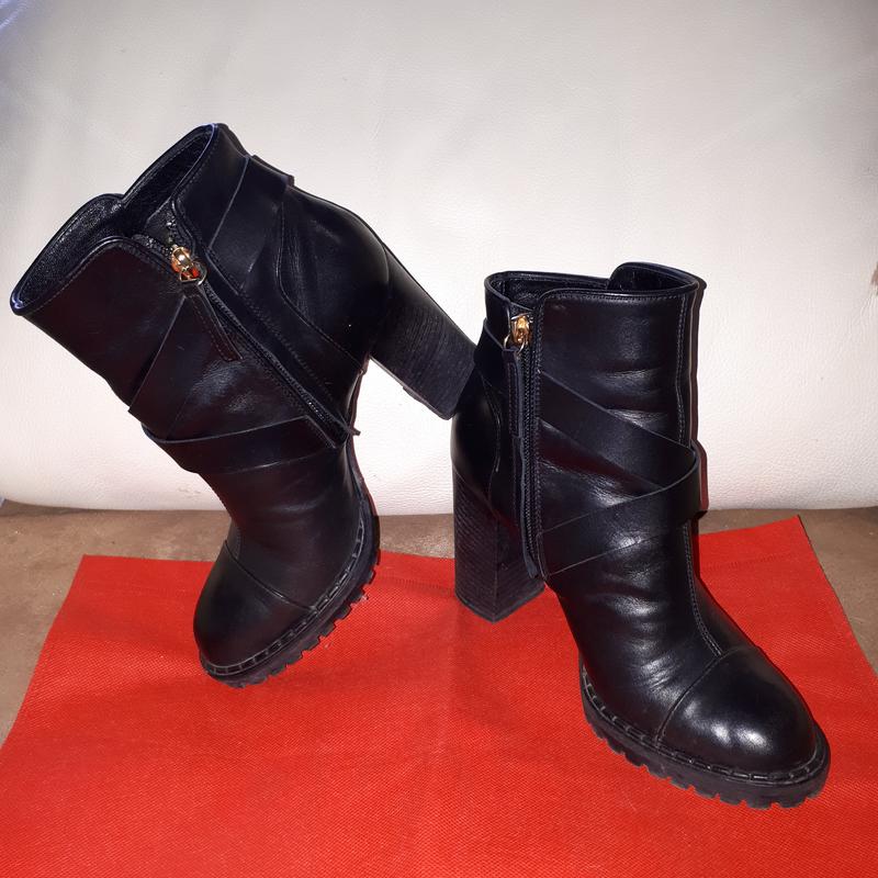 Ботильйони від бренду класу люкс лінія Tapeet, Італія. Стильні півчобітки повністю з високоякісної натуральної шкіри як зовні так і всередині, в дуже хорошому стані, єдино трохи стертий каблук (фото за запитом слелаю) але це легко можна виправити в майстерні, просто потрібно поміняти набійки. Зручні, якісні, бренд говорить сам за себе! Висота каблука - 9см., висота платформи - 2 см. Розмір вказаний 36,5. Довжина по устілці - 24 див. Підійдуть як на 36 так і на 37. Милі дівчата, заходьте до мене в шафу, є багато хороших якісних, брендових речей,взуття, є нові та б/у в дуже хорошому стані, а якщо і є десь якісь нюанси обов'язково це вказую! Роблю скидочки, подарунки:)