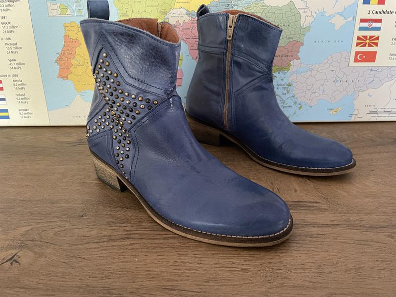 Черевики синього кольору, довжина стопи 22,5 див. На вузьку ногу.