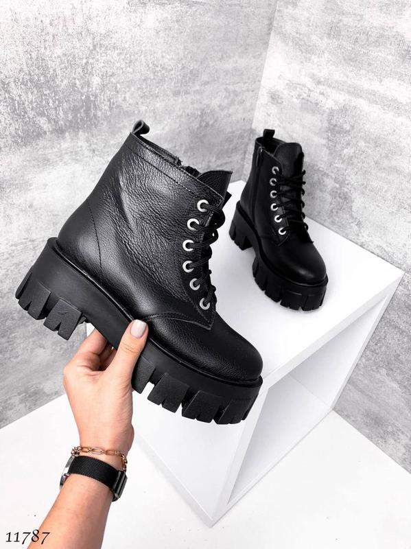 Код 11787 Зимові черевички колір: BLACK НАТУР. ШКІРА всередині: набивний хутро (у складі 30% вовни) збоку робоча блискавка висота від п'яти 12,5 см підошва: спереду 4,5 см, ззаду 6,5 см произв.-Україна