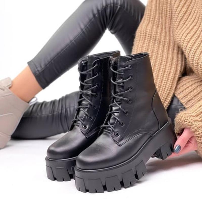 КОД 3390 Стильні черевички. Колір - BLACK. Матеріал: НАТ.ШКІРА. Внури: ХУТРО ( 40 -60 овчина) Висота від п'яти: 14 см. Висота підошви: спереду 3.5 см, ззаду 5.5 див. Розмірна сітка: 36-23,5 см 37-24 см 38-24,5 см 39-25.5 см 40-26 см Ціна 2200 грн