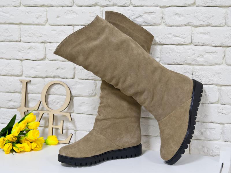 36-41р натуральная замша Сапог-угги из натуральной замши на удобной, утолщенной подошве черного цвета. Удобные для повседневного ношения, типа УГГИ (UGG). Материал верха - натуральная замша Внутренний материал - натуральная кожа/шерстяная байка Материал подошвы - PU Высота голенища / задника – 32,0 см Обхват голенища – 35,0 см Высота каблука/платформы - 3,0 см Высота подошвы впереди– 1,5 см Застежка - нет Тип утеплителя: Байка Европейка (+грн 100) Зима (+грн 200)