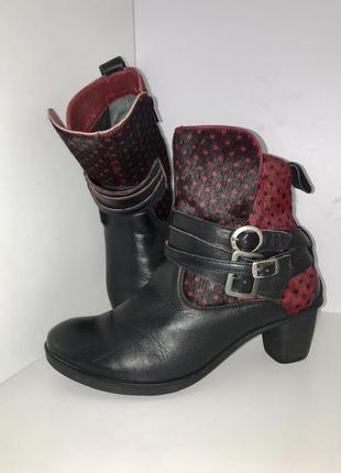 Оригінальна модель від німецького бренду Think! Взуття виготовлене з натуральної шкіри та хутра зверху. Модель оздоблена декоративними швами та елементами у вигляді ремінців. Для зручного одягання є застібка блискавка та петля. Внутрішня частина з шкіри та текстилю. Взуття має невеликі підбори. Підошва міцна, зручна та комфортна. Устілка ортопедична виймається. Черевики підійдуть для щоденного носіння та прогулянок, за допомогою яких ви можете створити багато модних образів. Довжина устілки: 24 см.; Ширина підошви: 9 см.; Висота підборів: 5 см.; Висота черевика з урахуванням підборів: 19 см. Дивіться інші наші оголошення.