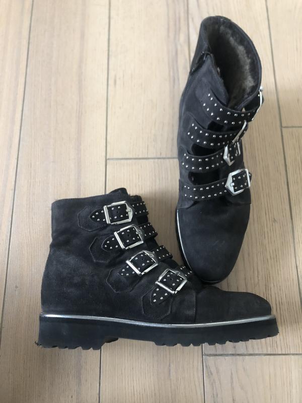 Круті черевики, куплені в Барсі вдягнуті 2 рази, сірий замш, хутро, стан ідеальний. Устілка 23,5 - 24. Куплені за 5500 віддаю задарма!