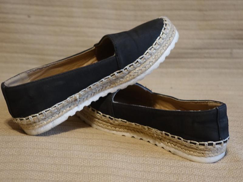 TESCO (F&F) — это лидер на рынке Англии и занимающая третье по величине, в мире торговая розничная сеть. F&F – марка одежды из Великобритании, бренд F&F (Florence&Fred) представлен в достаточно широком спектре товаров в сети TESCO, что само по себе уже говорит об превосходном качестве и ориентации на модных, но умеющих экономить деньги мам. Вся линейка одежды от бренда F&F отличается высоким качеством, собственным стилем, отличным соотношением «цена-качество», что достаточно характерно для английской одежды из сетей маркетов. Продаются фирменные эспадрильи английского молодежного мультибренда Florence&Fred. Эспадрильи — летняя обувь, легкие тапочки на плоской верёвочной подошве из натуральных материалов. Носятся на босу ногу. Их родина — Испания и юг Франции. Вошли в моду в 60-е годы ХХ века. Эспадрильи носят и мужчины, и женщины. Верх модели выполнен из плотной мягкой искусственной замши цвета индиго ( темно синий). С изнаночной стороны обуви есть подкладка, выполенная из мягкой искусственной кожи карамельного цвета . Стелька мягкая фирменная не съемная. Верх - мягкая искусственная кожа карамельного цвета. Подошва обуви выполнена из межподошвы и основной подошвы. Межподошва выполнена из пеньковой веревки натурального цвета. На уровне веревочной межподошвы верх изделия пришит особым фирменным швом толстыми нитками контрастного белого цвета. Основная подошва выполнена из высококачественной износостойкой рифленой резины молочного цвета . Обувь в отличном состоянии Размер 3, или 35,5. Длина стельки - 22,5 см. Максимальная ширина стельки около 7,7 см. Обувь на стандартную полноту стопы.