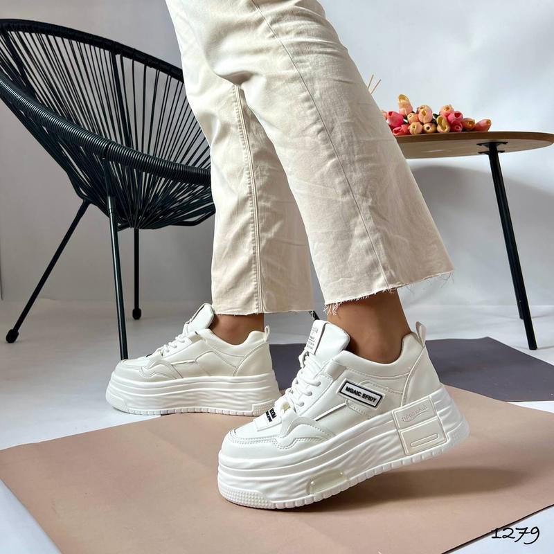 Код 1279 Це кохання з першого погляду Стильні та Неймовірно зручні кеди на потовщеній підошві матеріал: Єко.Шкіра Колір: Молочно - Білий Висота від п'яти 6 см Висота підошви 5,5см /4,5см маломірять з 36 по 41 рр 36 - 22,5 см 37 - 23 см 38 - 23,5 см 39 - 24 см 40 - 24,5 см 41- 25 см
