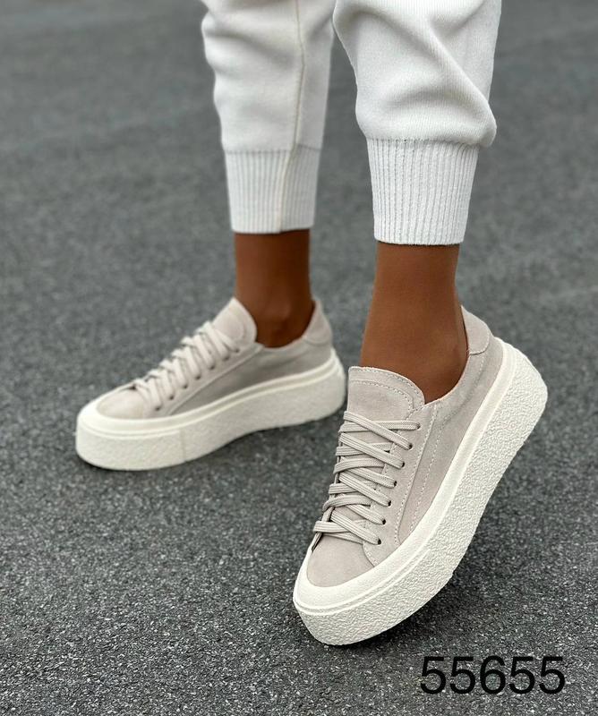 Світло-бежеві кеди з натуральної замші на масивній підошві