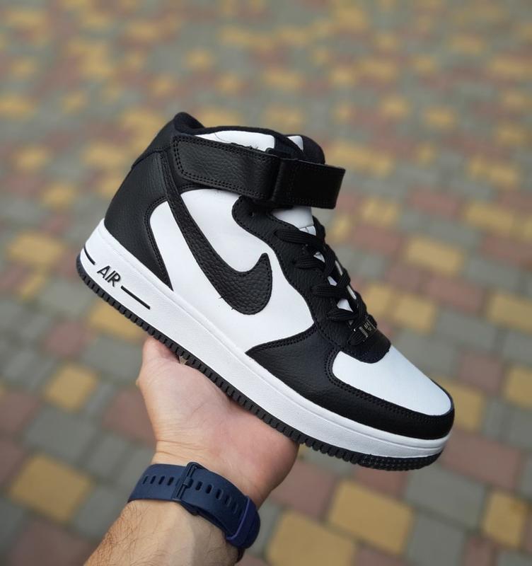 Прекрасные женские зимние высокие кроссовки nike air force 1 ' 82 чёрно-белые термо на фли...