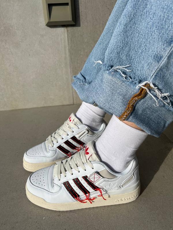 Жіночі шкіряні білі з червоним кросівки adidas forum low 84 🆕 адідас форум