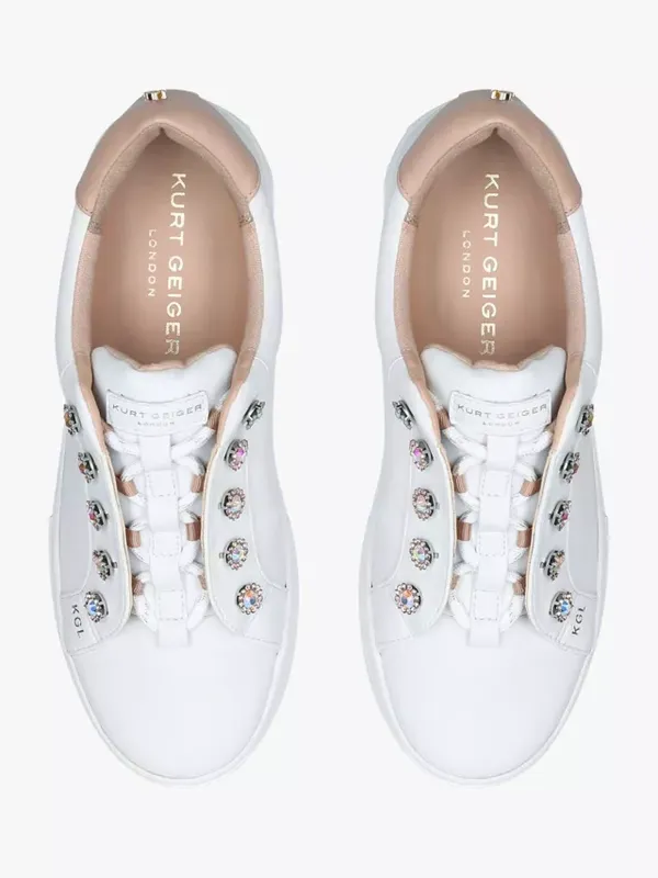 жіночі кросівки снікери Kurt Geiger London оригінальні кросівки на підошві платформі прикрашені стразами Додайте гламурності у свій повсякденний образ за допомогою кросівок Liviah від Kurt Geiger London. Модна річ, яка не залишиться непоміченою: кросівки привертають увагу завдяки прикрасам із каменів на люверсах. Легко надягаються, низька плоска підошва і класичний силует надають їм традиційного вигляду. вказано розмір 38 повна довжина устілки 25.3 устілка без загину 24.5 см виконані з нат шкіри всередині ко; а та текстиль тонкі смужки тримача шнурка спереду на язичку шнурків виконані зі шкірозамінника на одному кросівці потрісканий шар можна обчистити повністю