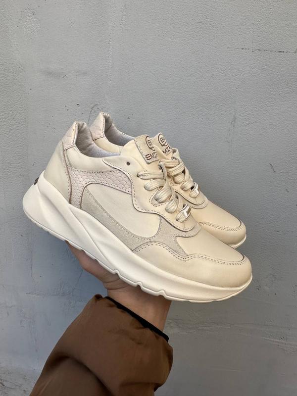 Стильні молочні якісні зручні жіночі кросівки весняні-осінні,демісезоні,шкіряні,натуральна...