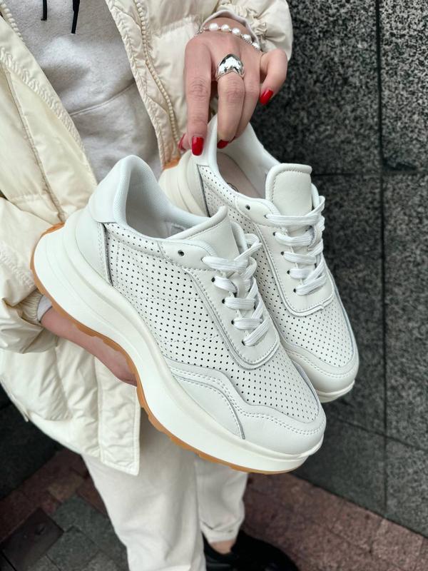 🔝8568 Кросівки Зручні та практичні Матеріал: НАТУР ШКІРА наскрізна перфорація Колір білий Р-сть 36-40 Підошва 5 см 36-23,5 см 37- 24 см 38-24,5 см 39-25,5 см 40-26 см