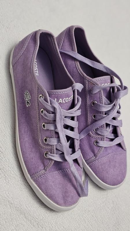 Оригінал кеди від Lacoste, у дуже красивому лавандовому кольорі 🪻 Опис: Розмір EU 39,5 (25,5см) Стан: Нові, мають незамітну світлішу плямку взаді на правому кеді