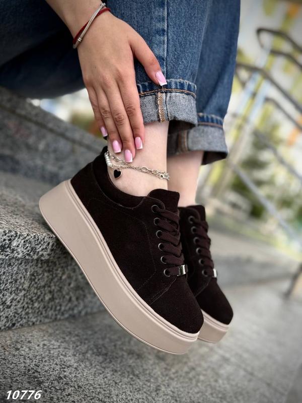 💖💖💖НОВИНКА💖💖💖НОВИНКА💖💖💖НОВИНКА💖💖💖 Код 10776 Кросівки Матеріал натуральна замша Колір коричневий На шнурівці Висота від п'яти 6,5 см Висота підошви позаду 5 см , попереду 3,5 см 🛒Розмірна сітка: 36 - 23,5 см 37 - 24,0 см 38 - 24.5 см 39 - 25,0 см 40 - 25,5 см 41 -26,0 см