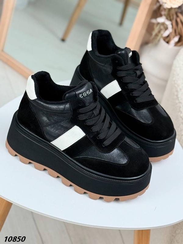 Код 10850 Кросівки Матеріал натуральна шкіра + натуральна замша Сезон Демі Підкладка фліс Колір Black На шнурівці Висота від п'яти 8 см Матеріал підошви - Піна Висота підошви позаду 6,5 см , попереду 5 см 🛒Розмірна сітка: 36 - 23,0 см 37 - 23,5 см 38 - 24,0 см 39 - 24,5 см 40 - 25,0 см 41 - 25,5 cм