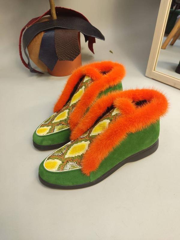 Яскраві теплі лофери замша + ексклюзивна шкіра з тисненям та хутро норки