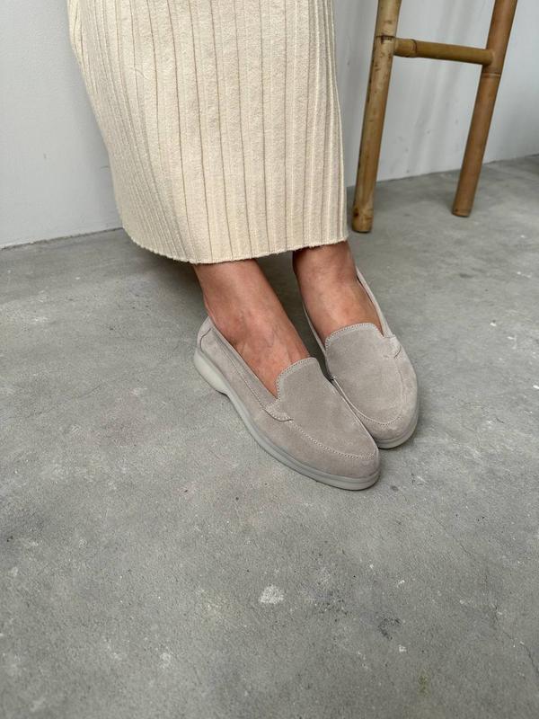 Лофери Матеріал: натуральна замша Матеріал підкладу: натуральна шкіра Колір: беж Підошва: поліуретан Висота підошви: 2.5/1.5 см Розмірний ряд: 36-41