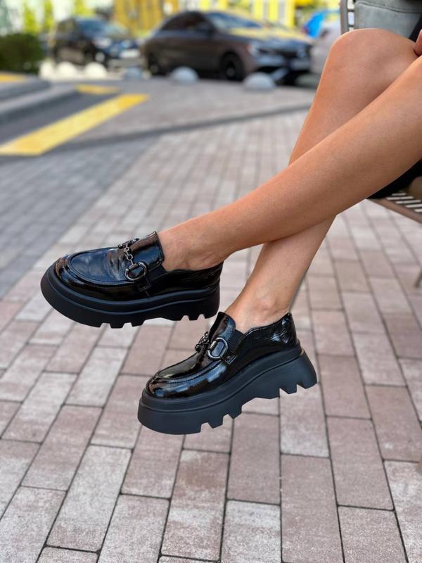 Туфлі лофери жіночі шкіра наплак чорні