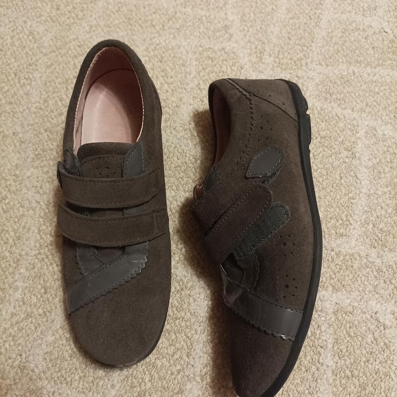 Натуральний замш зверху та натуральна шкіра всередині, стан нових.Не на широку ногу.Устілка 24,5.Виробництва Португалії