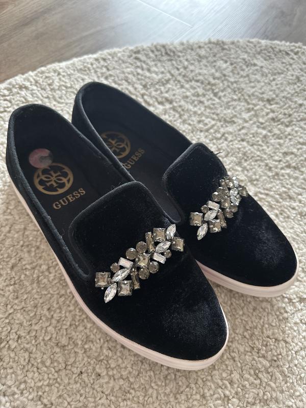 Продам мокасіни від Guess. Состояние новых. Обувала пару раз. Не угадала с размером для себя. Вилюровое покрытие, украшенные камушками. Выглядят очень дорого на ножке. Мокасины, которыми можно дополнить образ. Размер стельки -24 см.