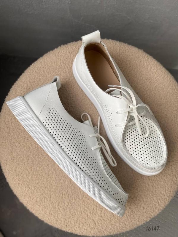 Білі натуральні шкіряні мокасини туфлі на шнурках шнурівці з перфорацією шкіра