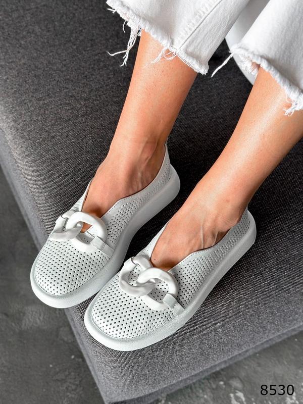 Код: 8530 Матеріал: натуральна шкіра з наскрізною перфорацією Колір: білий підошва: 3 см, спереду: 2 см Виробництво Україна