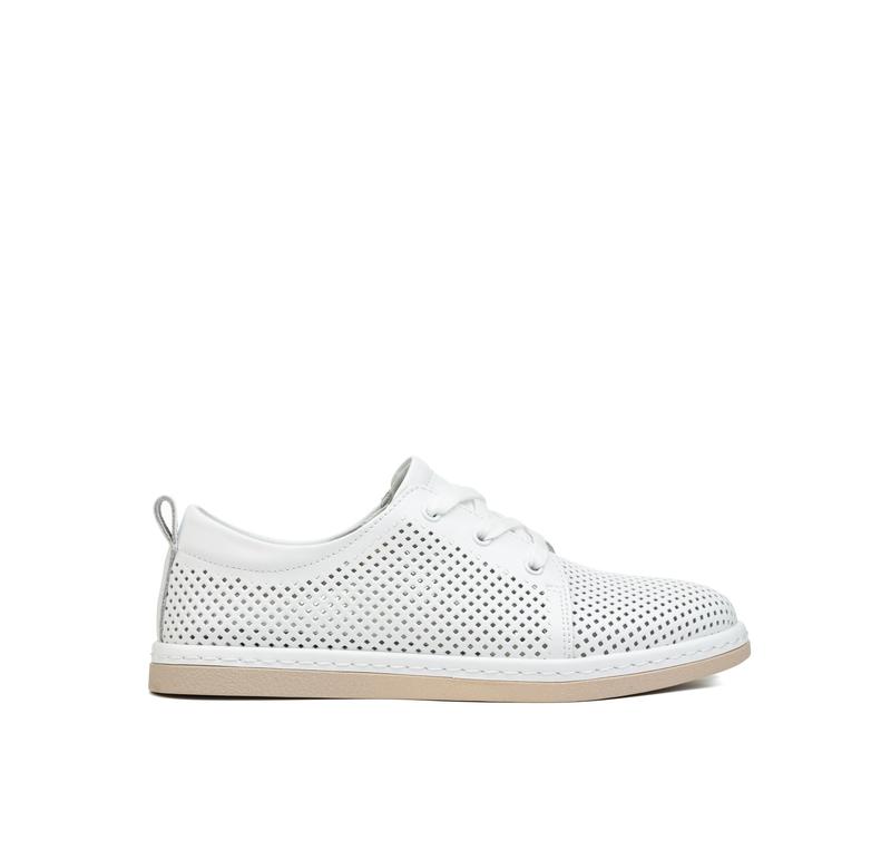 Жіночі мокасини білі на зручній підошві з перфорацією 2682т