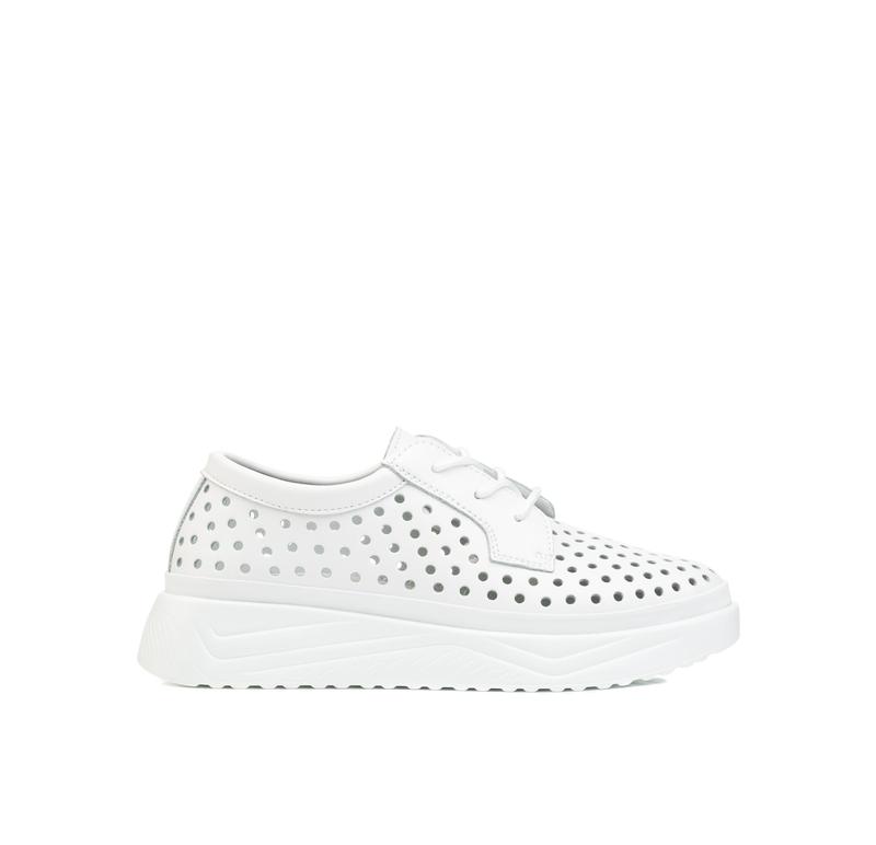 Мокасини жіночі білі з перфорацією на білій підошві на шнурівці літні 2684т