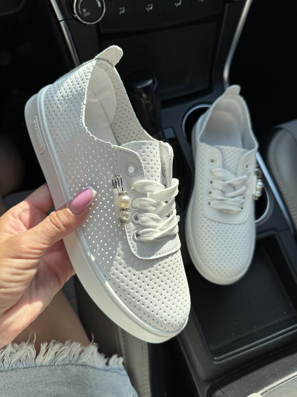 Мокасини жіночі білого кольору на шнурку з перфорацією