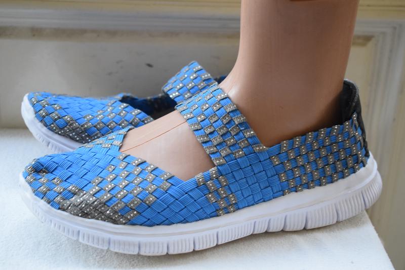 Продам невагомі м'які літні туфлі мокасини сліпони сандалі плетінка блакитного кольору зі сріблястими вставками, неопрен-відмінно потягнуться, розмір 39 за устілкою — 25,5 см. Мокасини в ідеальному стані, без дефектів, без нюансів. Дивіться інші оголошення